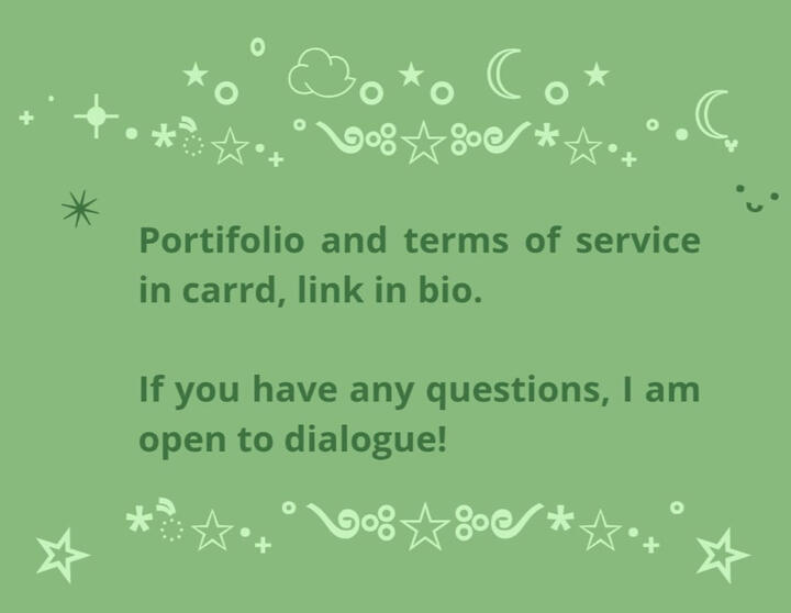 Portifolio and terms of service in carrd, link in bio.If you have any questions, I am open to dialogue!